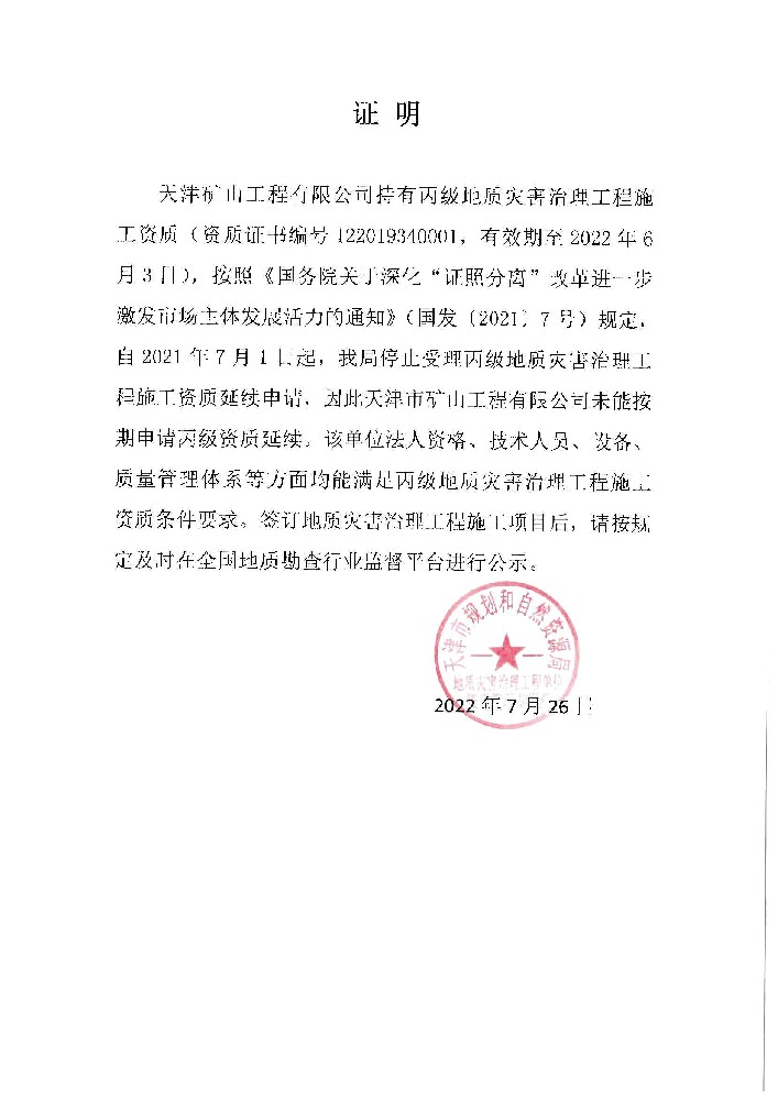 天津礦山工程有限公司(以下簡(jiǎn)稱(chēng)公司)始建于1965年,隸屬中國(guó)建材集團(tuán)有限公司,是從事礦山總承包、礦山開(kāi)采運(yùn)營(yíng)、礦山設(shè)計(jì)與咨詢、土石方爆破、生態(tài)恢復(fù)治理、鋼結(jié)構(gòu)制作安裝、機(jī)電設(shè)備安裝以及工程測(cè)量的專(zhuān)業(yè)化礦山施工企業(yè)和礦山開(kāi)采運(yùn)營(yíng)總承包服務(wù)商。具備礦山總承包和爆破雙一級(jí)資質(zhì)。 公司始建于1965年,總部位于天津市···